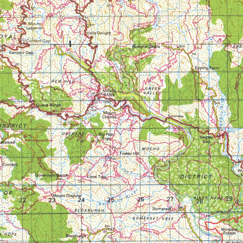 Blue Mountain Jamaica Topographic Map
